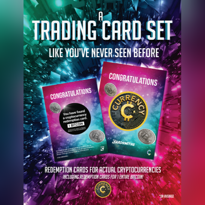 Currency Series 5 also features the largest-ever offering of Cryptocurrency Redemption cards in Cardsmiths’ history, exchangeable for varying amounts of Bitcoin, Ethereum, Litecoin, and Dogecoin, including major hits like 1 BTC and 1 ETH.